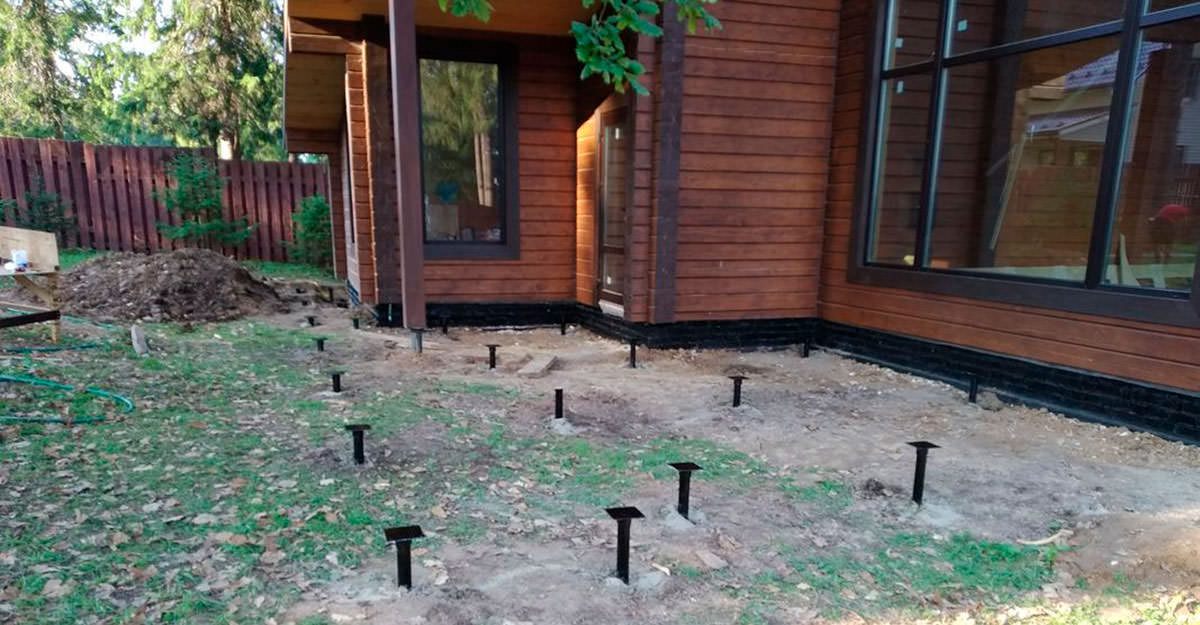 Монтаж вкручивающихся свай для веранды: